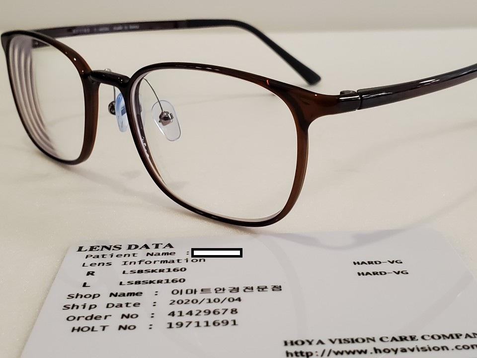 안경렌즈는 일본의 호야 회사의 제품으로 중상급의