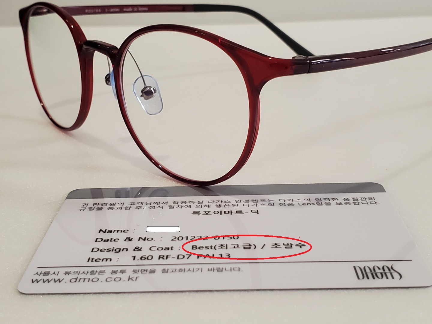 안경렌즈 = 대명 REALFORM D7 1.56