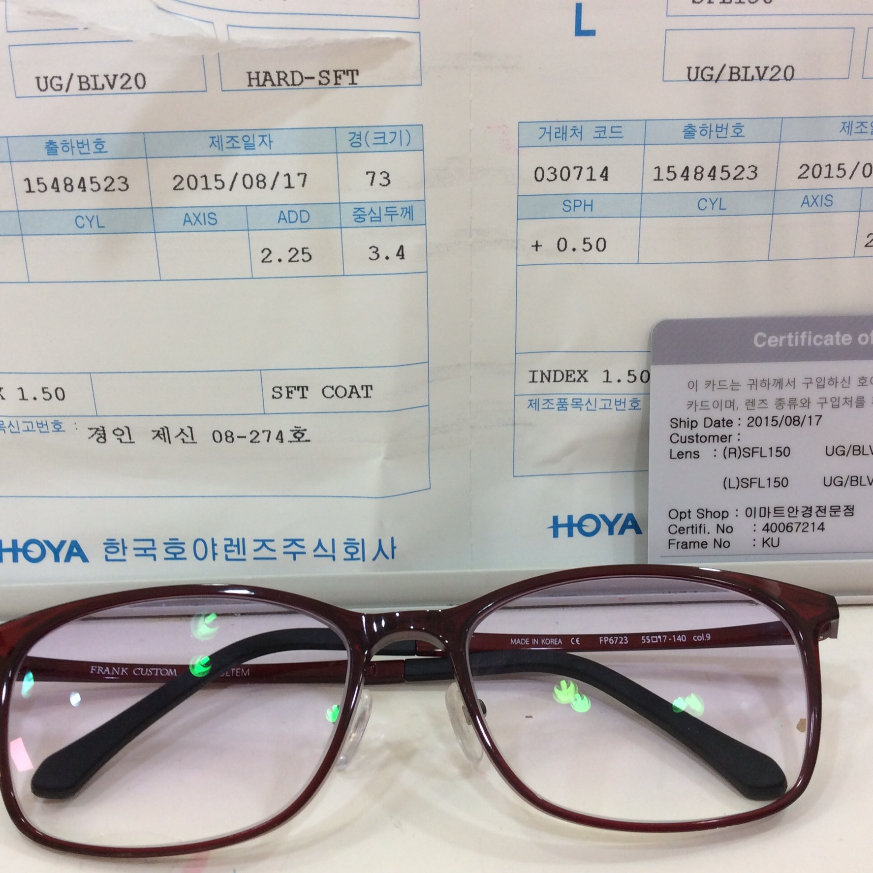 제품명:프랭크 커스텀 울템, 호야 프리미엄 누진다초점 렌즈