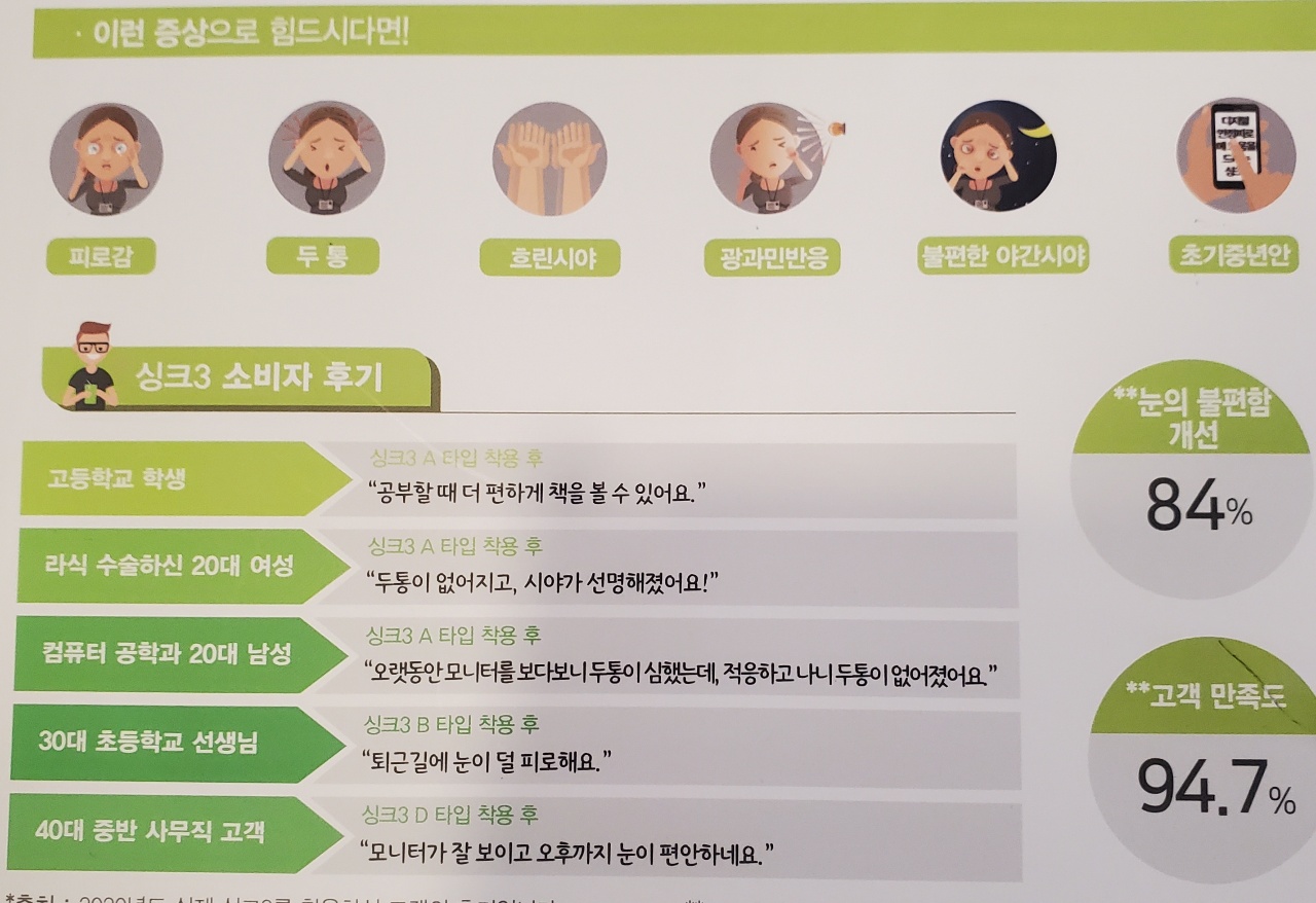 기능성 렌즈는 근거리 업무 시 피곤함이나 흐린 시야 피로감이 있는