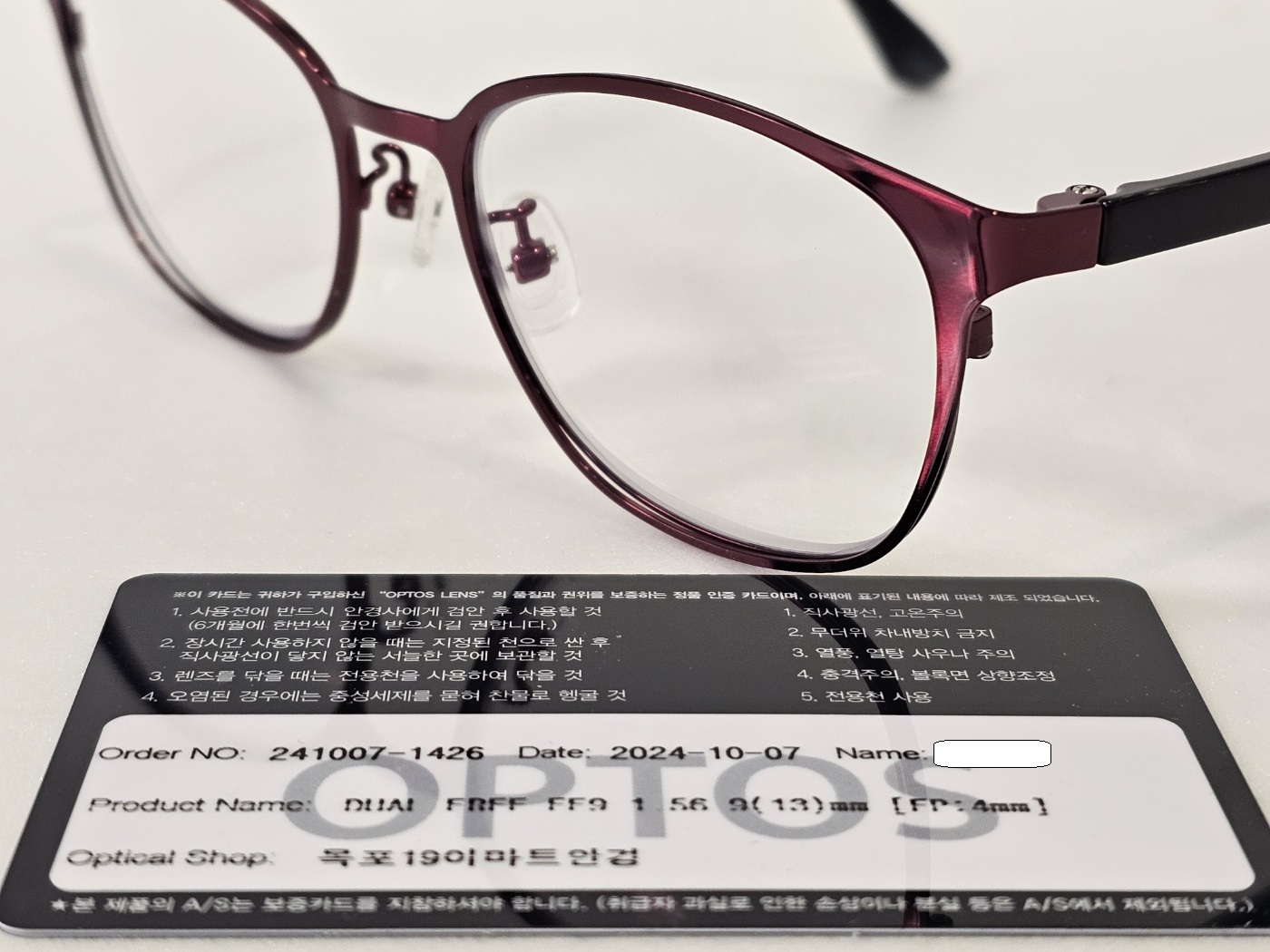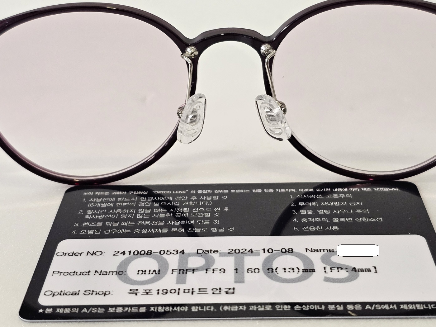국산 누진 다초점 안경입니다