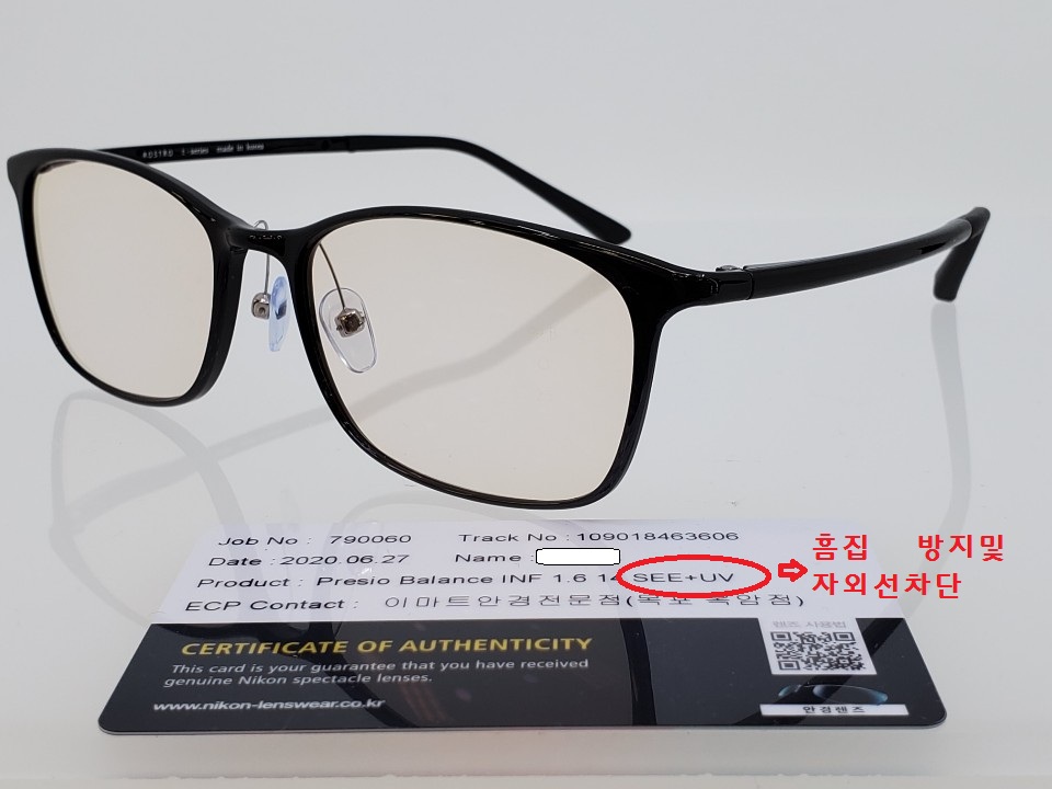 안경렌즈 = 니콘 밸런스1.6 CMB20/단색 SEE+UV
