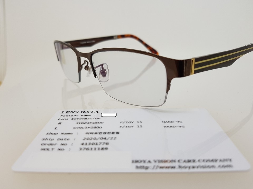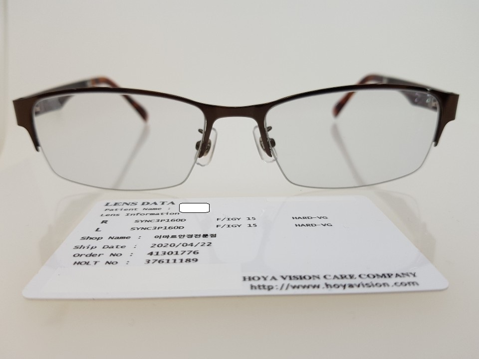반무테 안경이 선택되었고 안경렌즈는 기능성 렌즈로