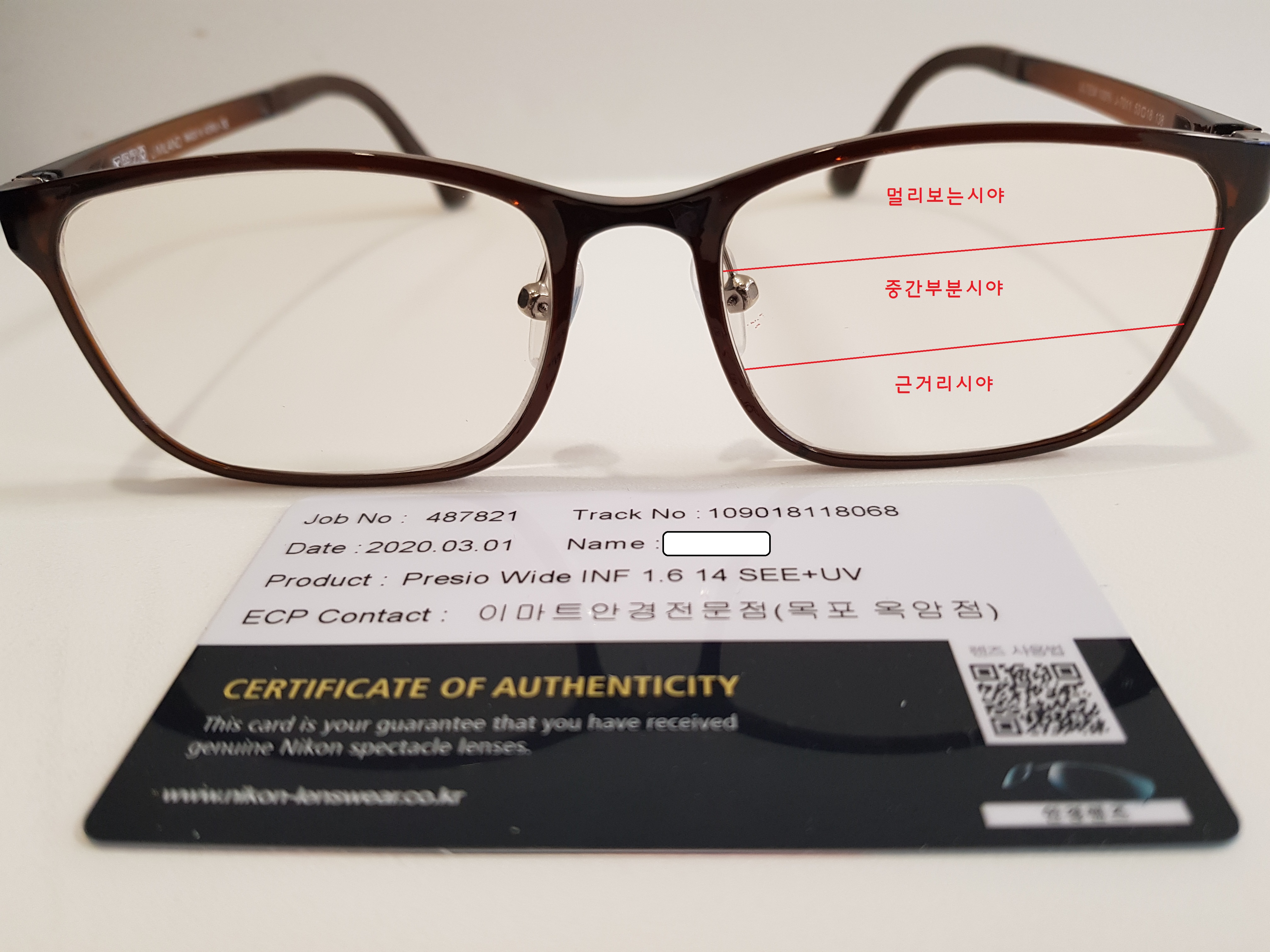 그리고 사진처럼 안경하나에 원거리/중간거리/근거리 도수가 같이 들어가있어