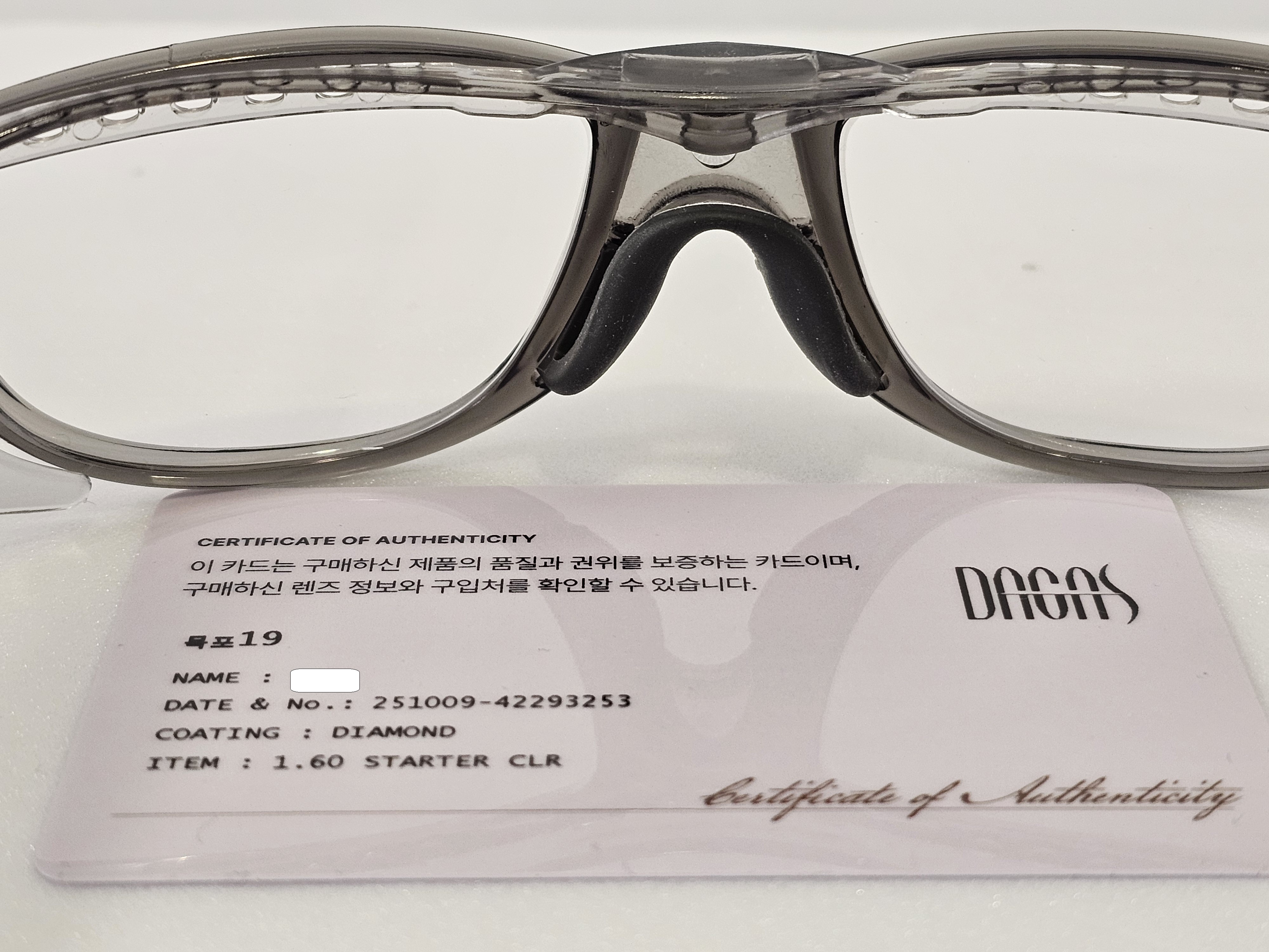 그리고 안경테의 하단부가 볼살과 손가락 하나 정도의 틈이 있어야 근거리 존이 확보되서