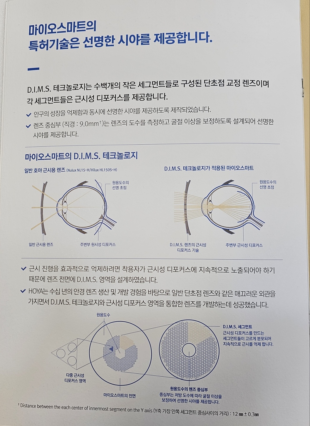 중심부 0.9cm 은 근시교정 딤스존 3.3cm으로 근시진행 완화 효과