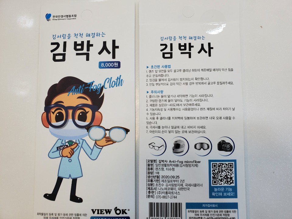 김 서림 방지 클리너에 묻어있는 김서림방지액 성분으로 안경을 닦아주면
