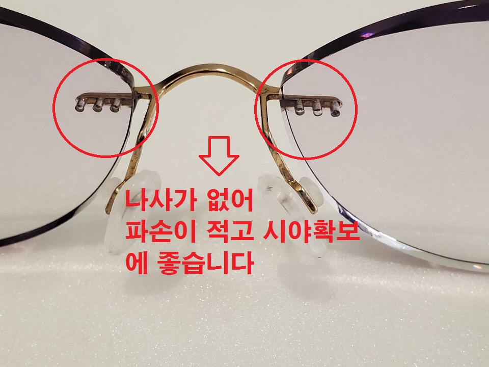 그리고 무테의 특성상 일반 무테는 안경렌즈에 구멍을 내서