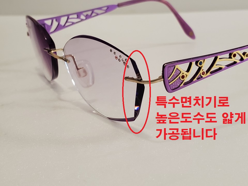 일반적으로 도수가 높으면 렌즈 두께가 두꺼워서 무테 선택하길 주저하십니다