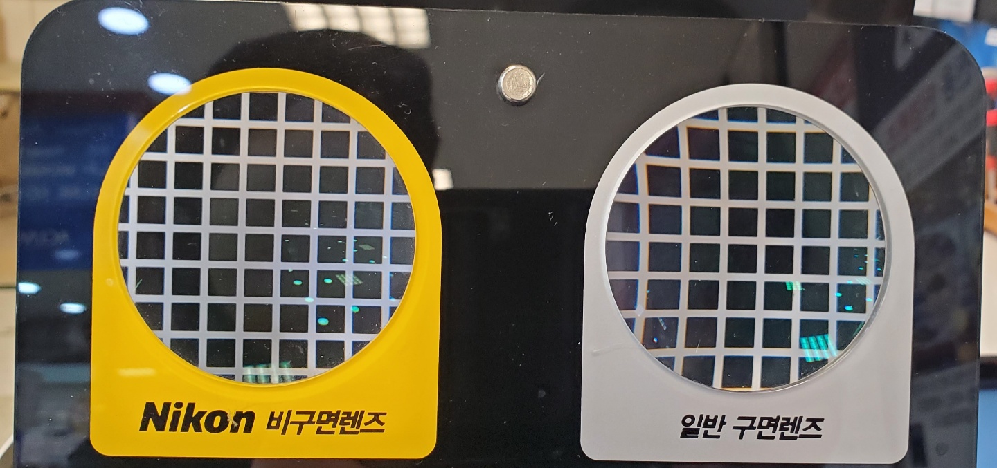 반면에 비구면 렌즈는 주변부까지 일정하게 보이는 현상이 생깁니다.