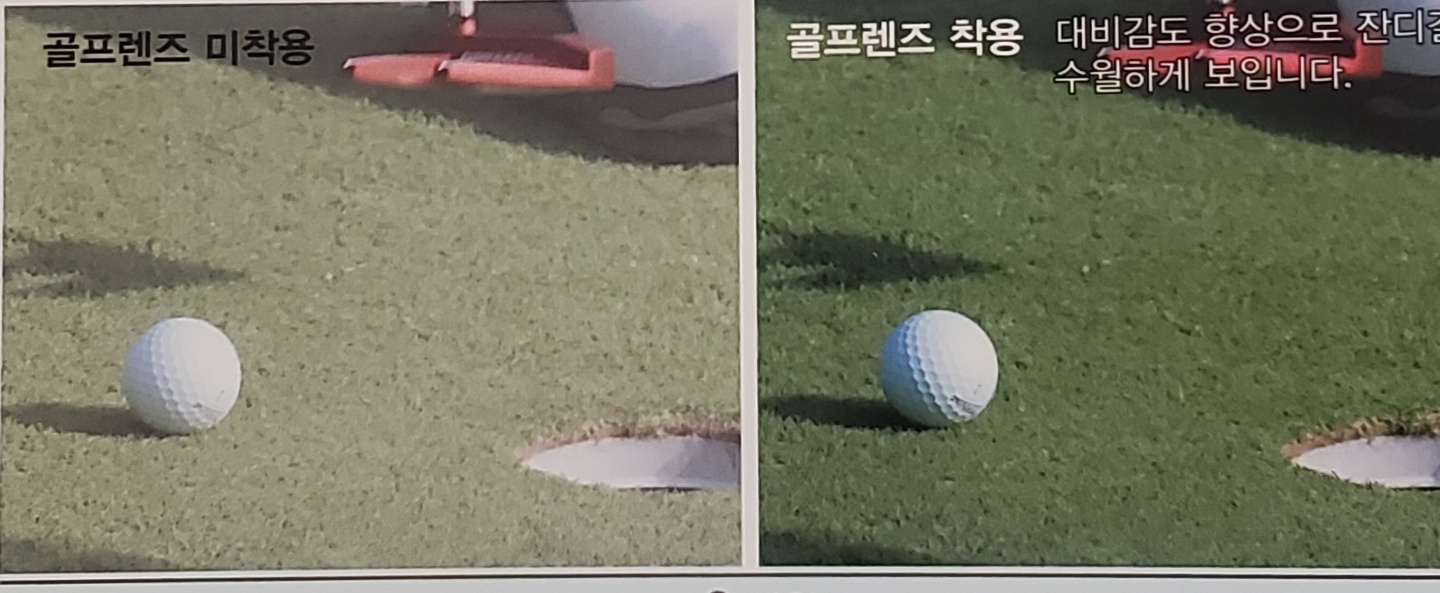 녹색~황색의 파장을 강조하여 잔디색의 콘트라스트를 높이는 기능으로