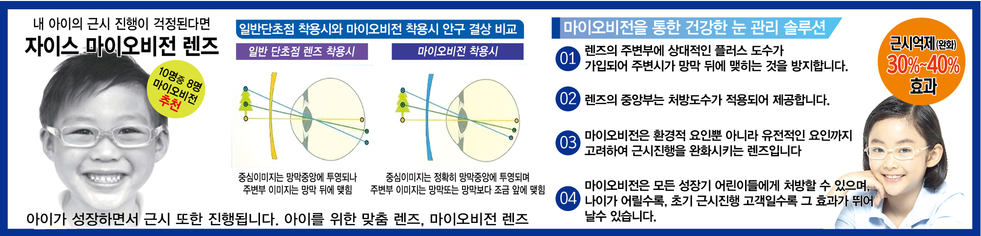 오늘은 어린이 와 학생들에게 필요한 근시 억제 안경 렌즈 소개입니다