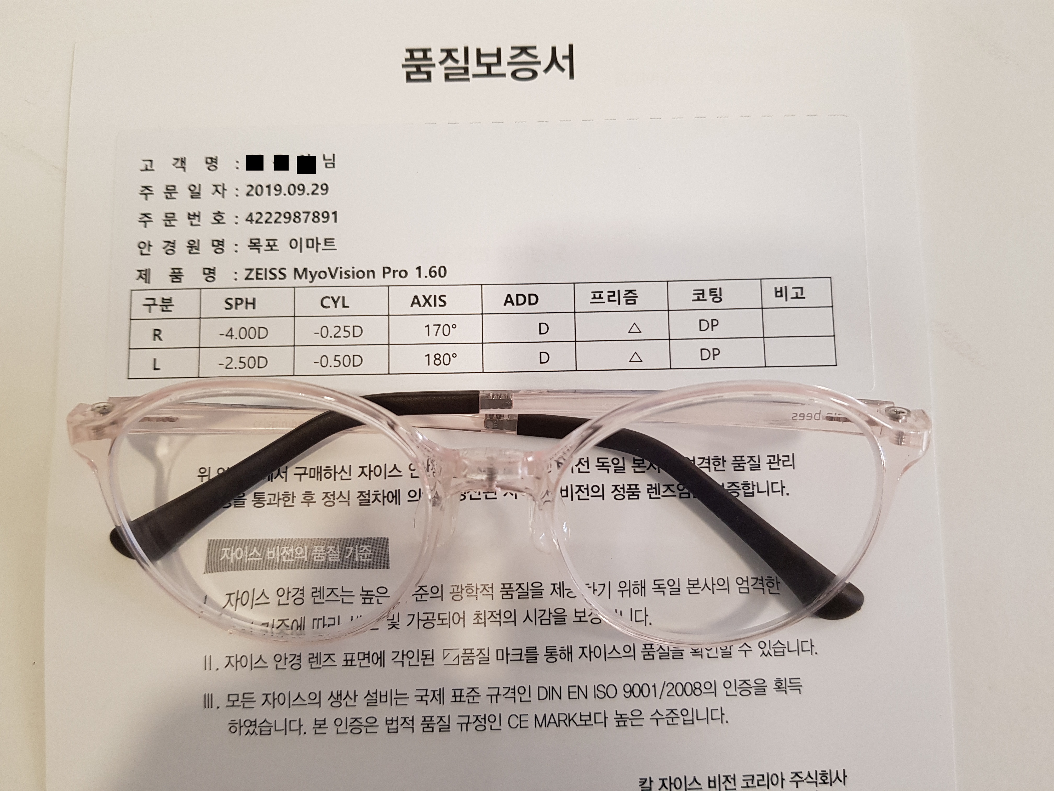 되고있는 안경렌즈입니다