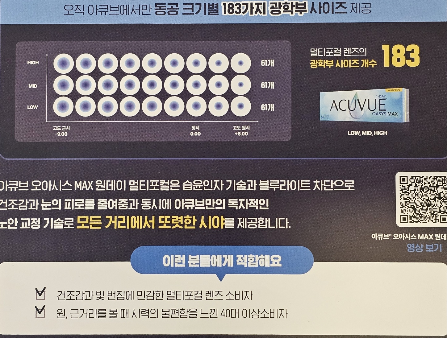 아큐브 오아시스 맥스 멀티포컬 렌즈입니다