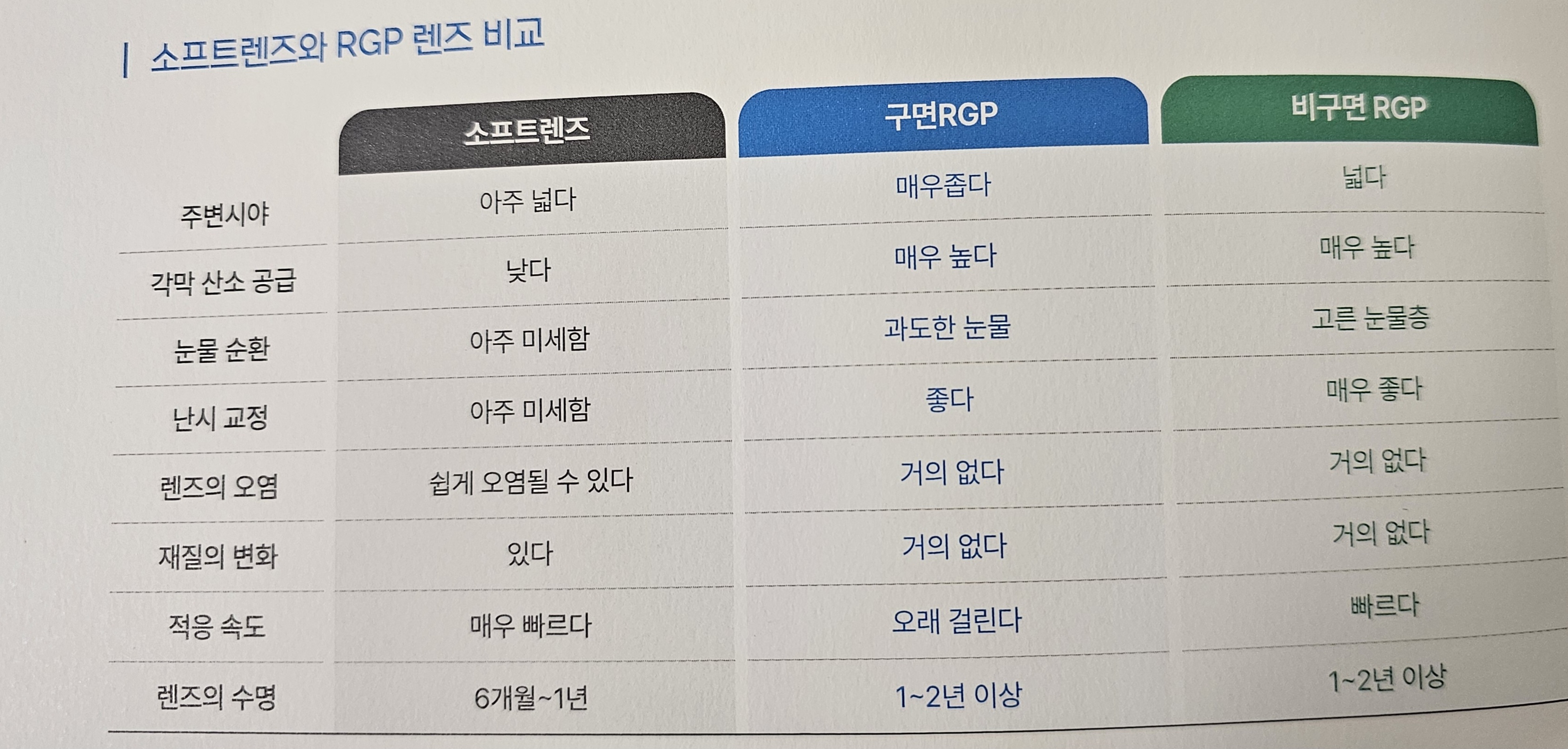 일반적인 구면 하드렌즈에 비해 여러 가지 장점을