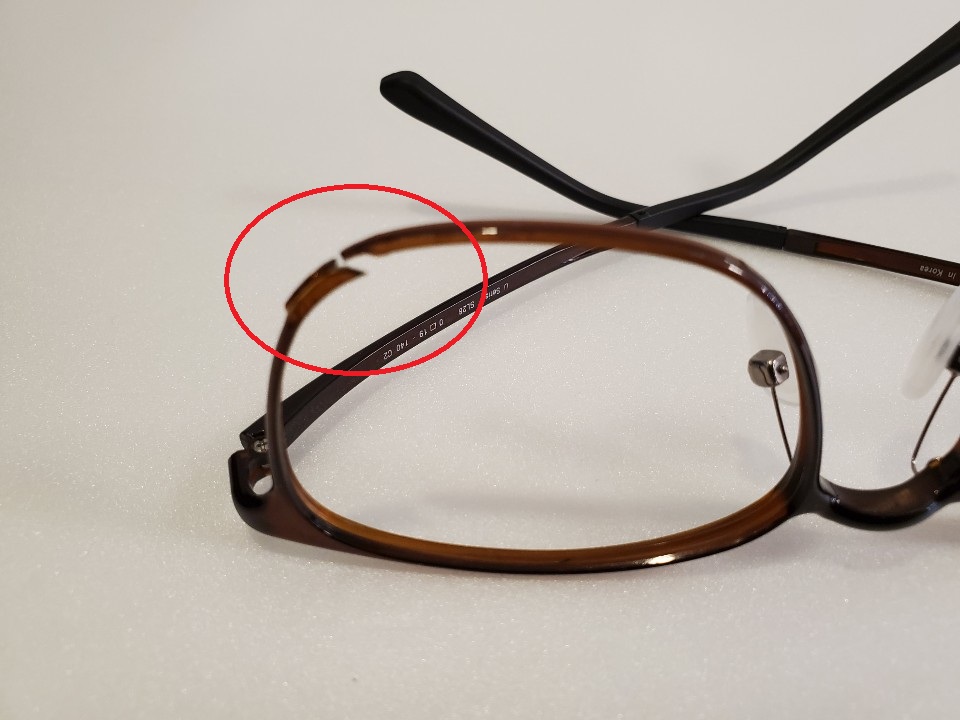 모든 안경테는 사용하다보면 부러지거나 깨질 수 있습니다