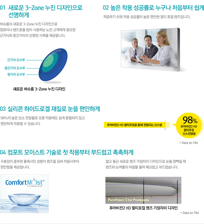 디지털 기기에 지친 눈에 하루종일 편안한 렌즈 착용감을 제공합니다.